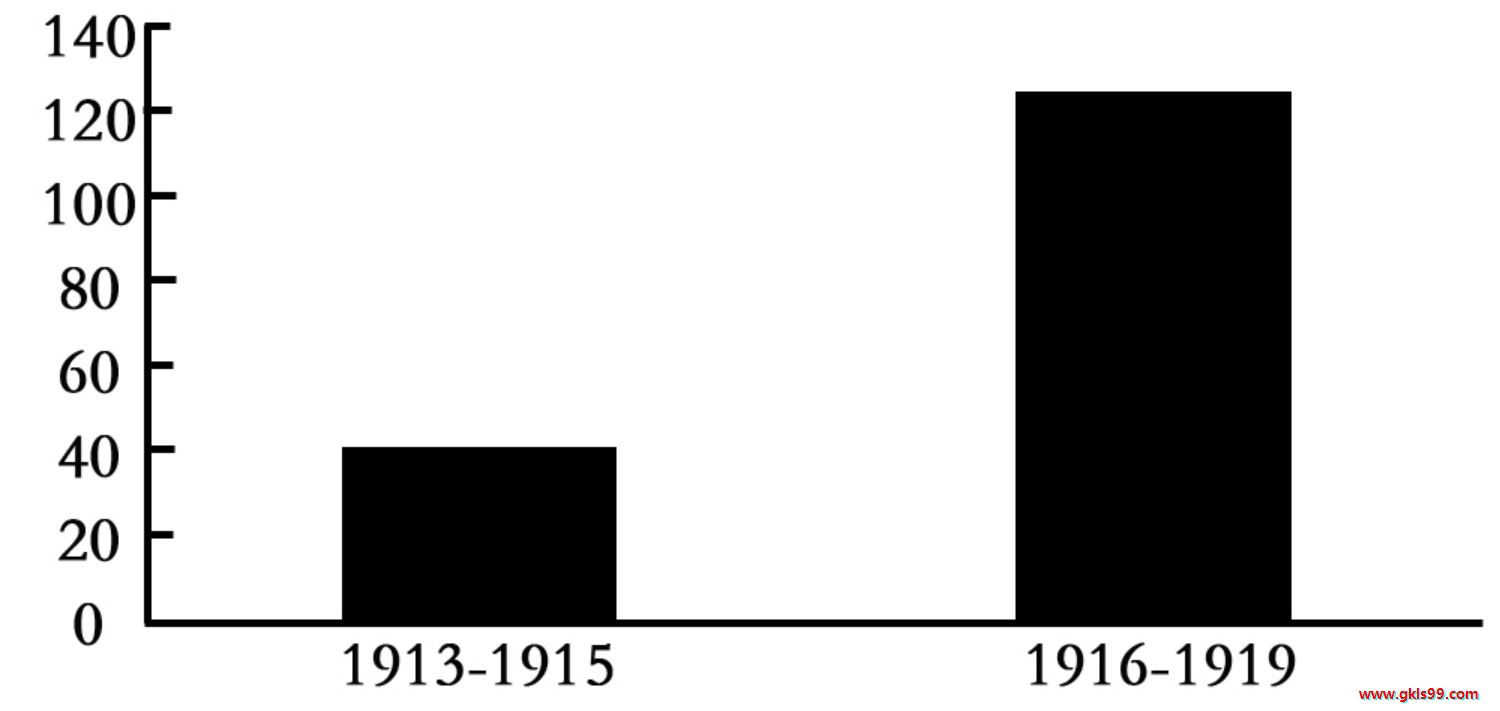 从本题所示变化分析年均注册工厂大幅度增加的原因有:张謇倡导“实业救国”思想的影响;孙中山领导辛亥革命的鼓舞及一战期间,欧洲列强忙于战争,无暇东顾等。从时间看,当时清政府的统治也宣告结束,因此可排除A。故本题正确答案为D。