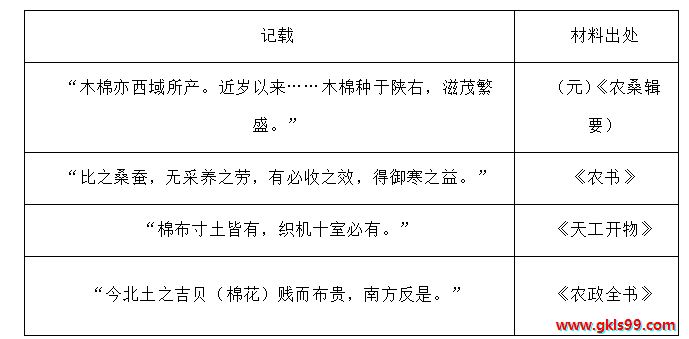 下表是与棉花种植或棉布相关的历史记载,据此推论合理的是( )