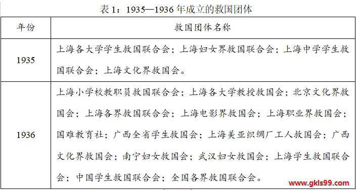 【解析】据材料“表1:1935—1936年成立的救国团体”可知,随着日本侵华的加剧,中华民族日益觉醒,抗日救亡运动如火如荼的开展,各种抗日救亡团体纷纷成立,团结抗日的条件日趋成熟,故选D项;日军两次入侵上海,1932年“一二八”事变和1937年淞沪会战,与材料时间不符,排除A项;学生参加各种救国会,起了先锋作用,抗日战争的主力是国共军队,排除B项;1937年9月22日,国民党中央通讯社发表了中国共产党提出的国共合作抗战宣言,第二天,蒋介石发表谈话,承认中国共产党的合法地位,国共第二次合作正式形成,抗日民族统一战线正式建立,排除C项。