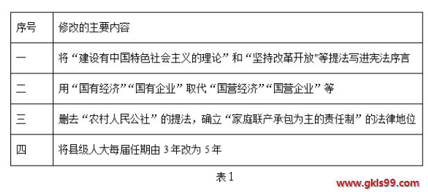 表1所示为我国1993年宪法修正案的主要内容。据此判断,1993年宪法修正案( )